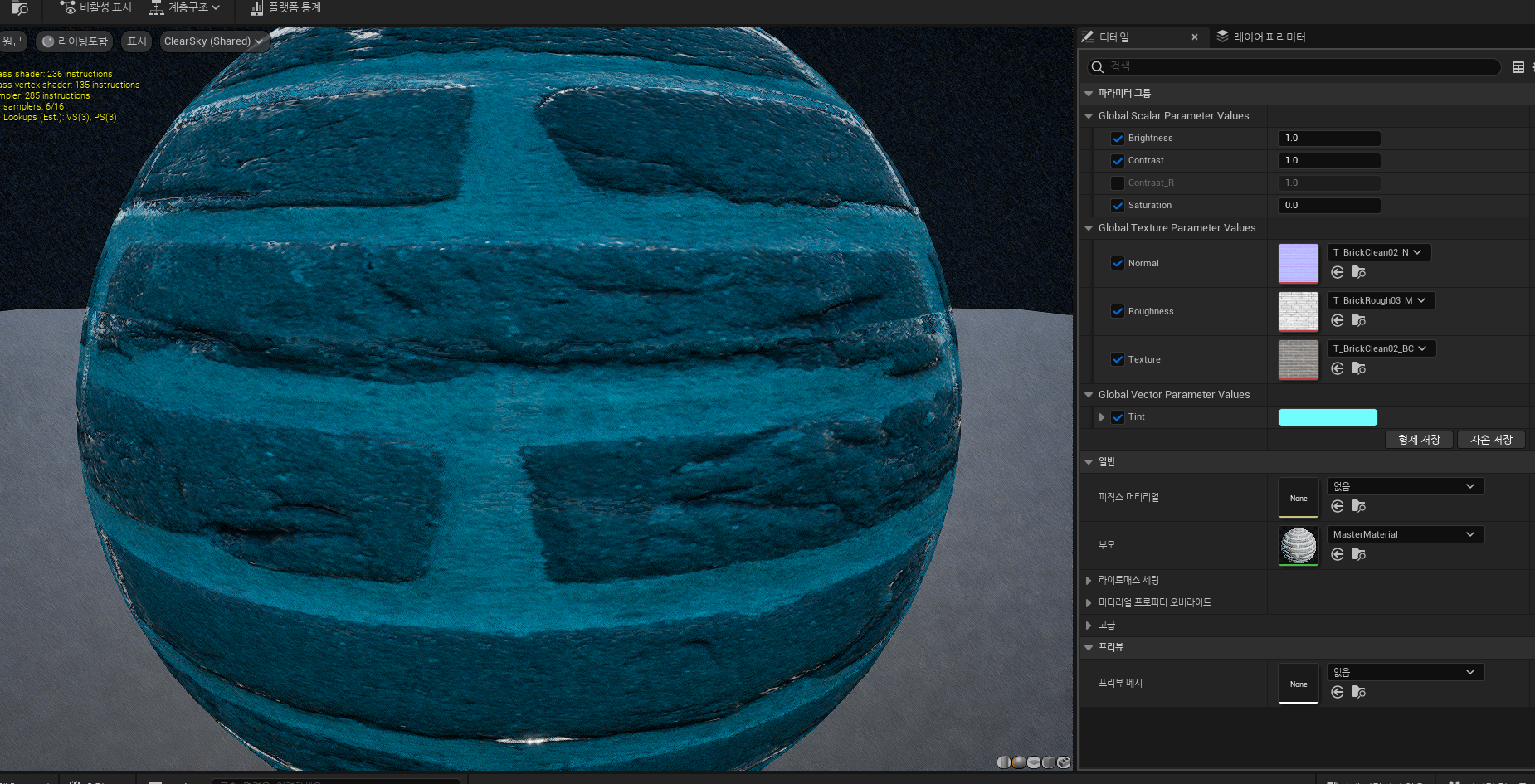 이렇게 만든 마스터 매테리얼 오른쪽 마우스클릭 - 머터리얼 인스턴스 생성